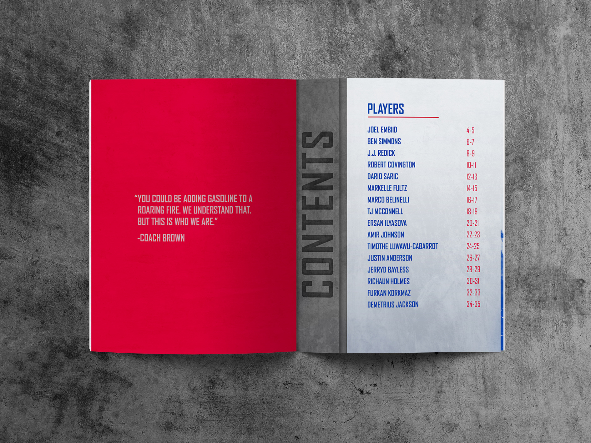 Official team roster book created for the Philadelphia 76ers organization.